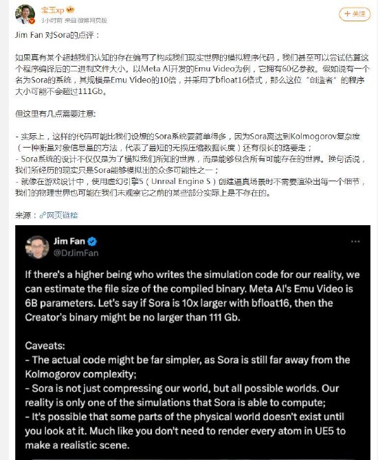 以下为Jim Fan的点评内容,由知名互联网资讯博主“宝玉xp”翻译:
