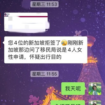 我这情况即使不申请新加坡签证,也可以免签进入新加坡96小时,为了和朋友们一起,才办了团签。结果被拒签了。