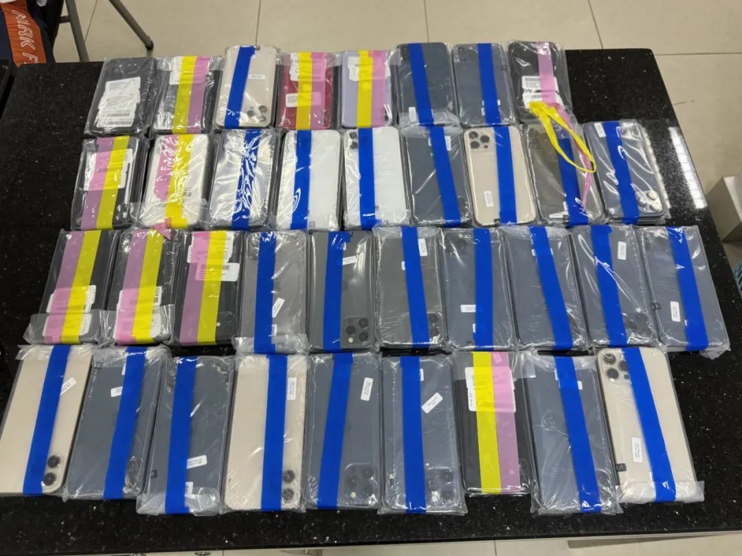近日,拱北海关所属港珠澳大桥海关查获一起走私案,关员在一辆进境粤澳两地牌车的改装电池盒内,查获藏匿的72部旧手机。