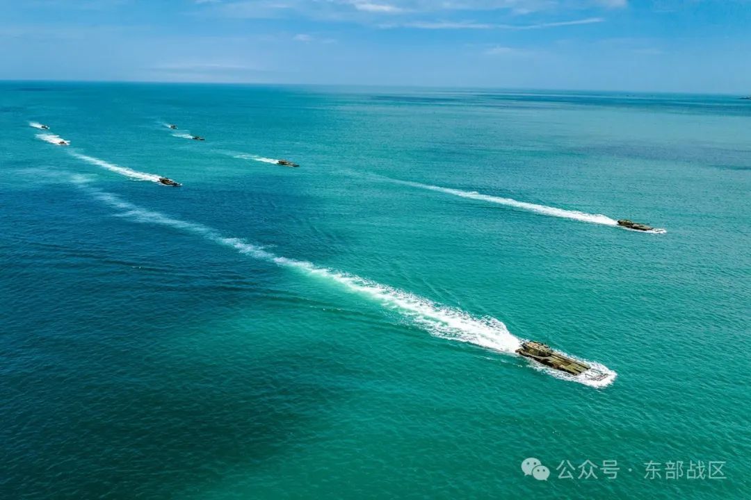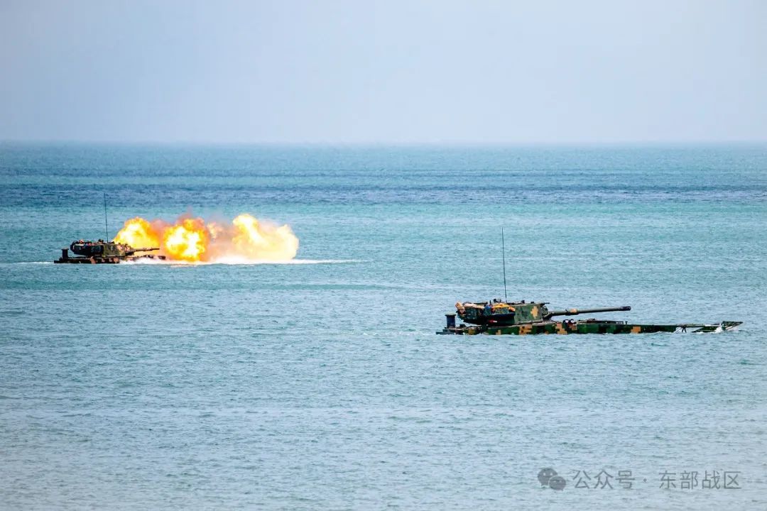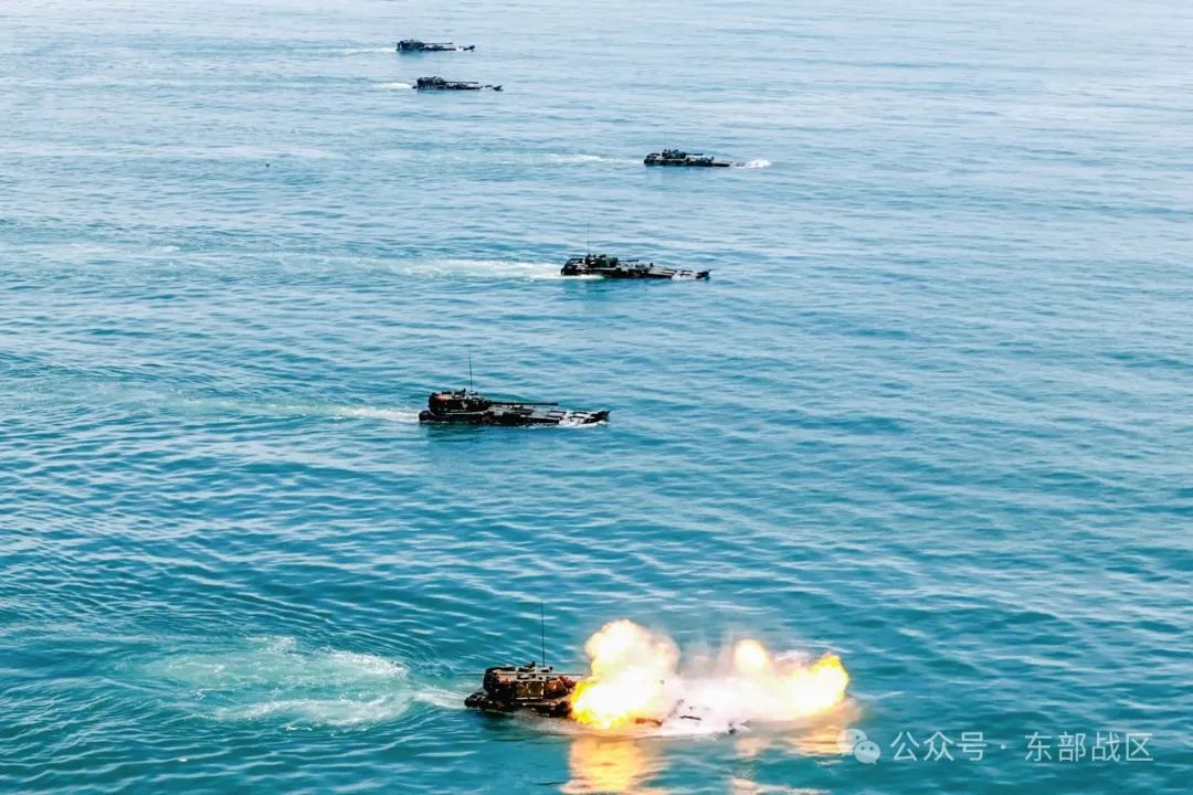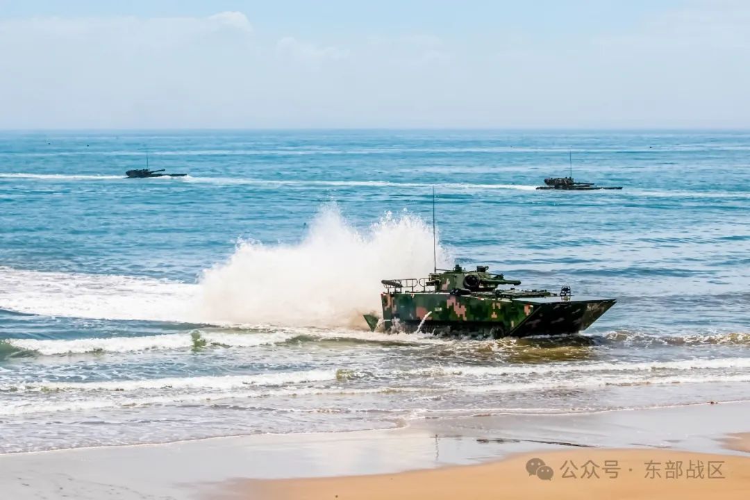 两栖战车如蛟龙驶入大海