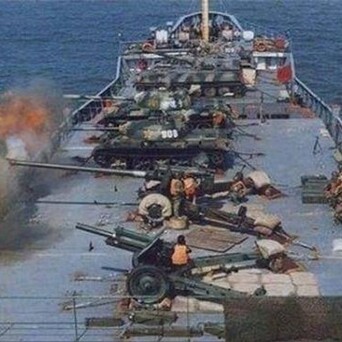 在十几年前解放军测试的“地炮上舰”方案中,我们就曾经用平板运输船充当过火力支援舰。但正如我们在照片中看见的那样,这种想法过于简陋,难以在实战中发挥出足够的效果。所以也就没什么下文了。而平板运输船也因为运力不足,在之后被更大的滚装船所取代,退居二线。